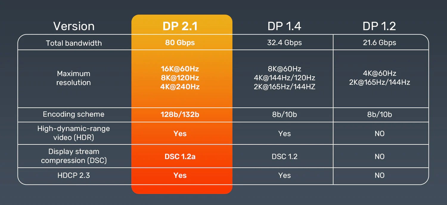 Makks. Çözünürlük 16K@60Hz, 8K@120Hz, 4K@240Hz