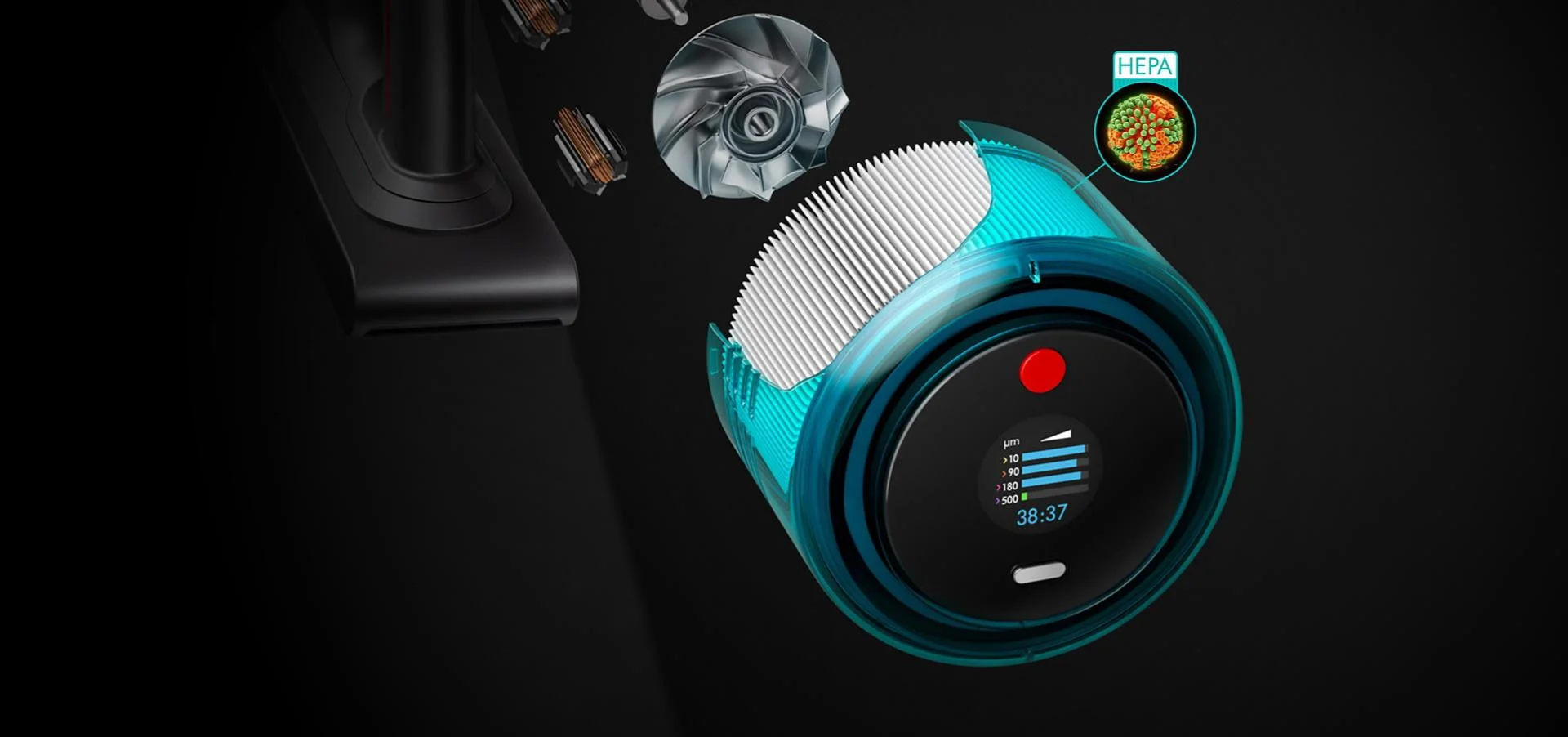 Birçok yepyeni teknolojiyi 3,5 kg'lık bir makineye sığdırdık. Gelişmiş emiş gücü ve gelişmiş HEPA filtrasyonu; toz algılama ve ekranda temizliğin bilimsel kanıtıyla.
